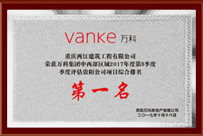 万科E区三期二标荣获万科集团中西部区域2017年3季度综合评估第一名